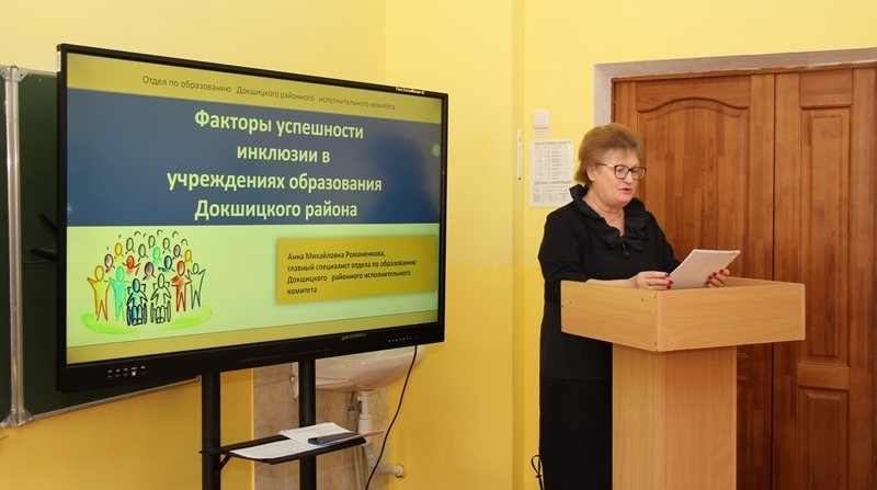 Пра фактары паспяховасці інклюзіі ва ўстановах адукацыі Докшыччыны паведаміла Ганна Раманенкава, галоўны спецыяліст аддзела па адукацыі райвыканкама.