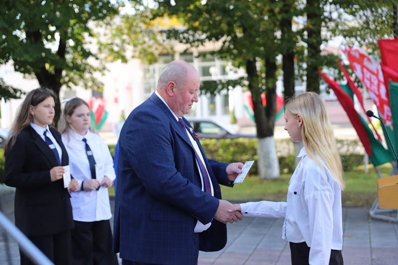 В торжественной обстановке глава района вручил билеты новым членам районных организаций ОО «БРСМ», РОО «Белая Русь» и отделения партии «Белая Русь».