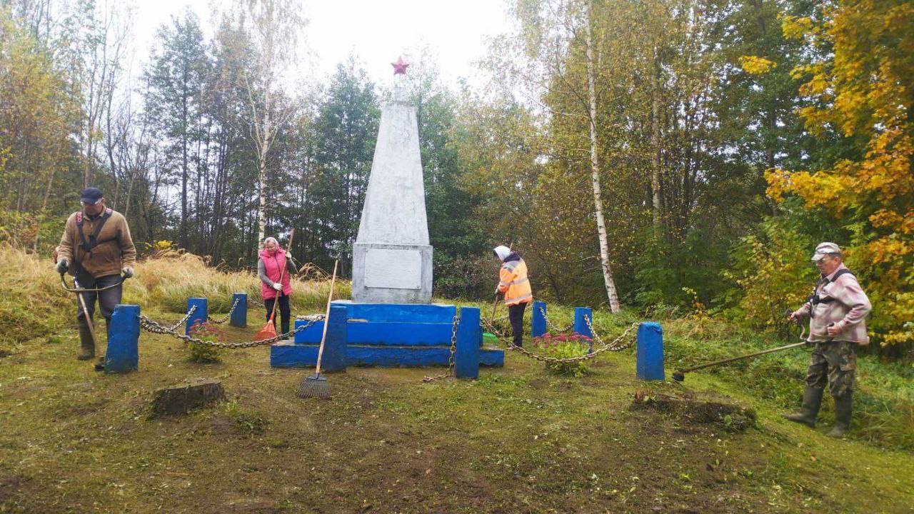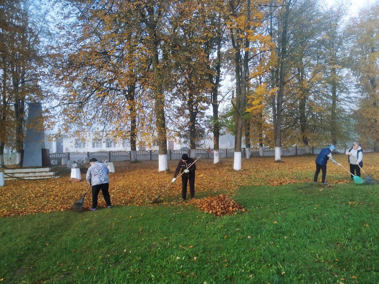 Жители, школьники и трудовые коллективы наводили порядок, убирали листву, благоустраивали памятные места.
