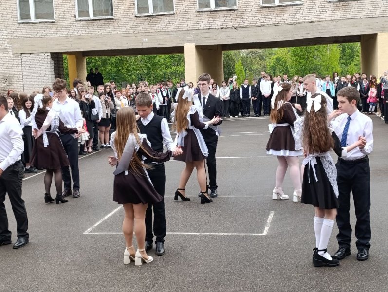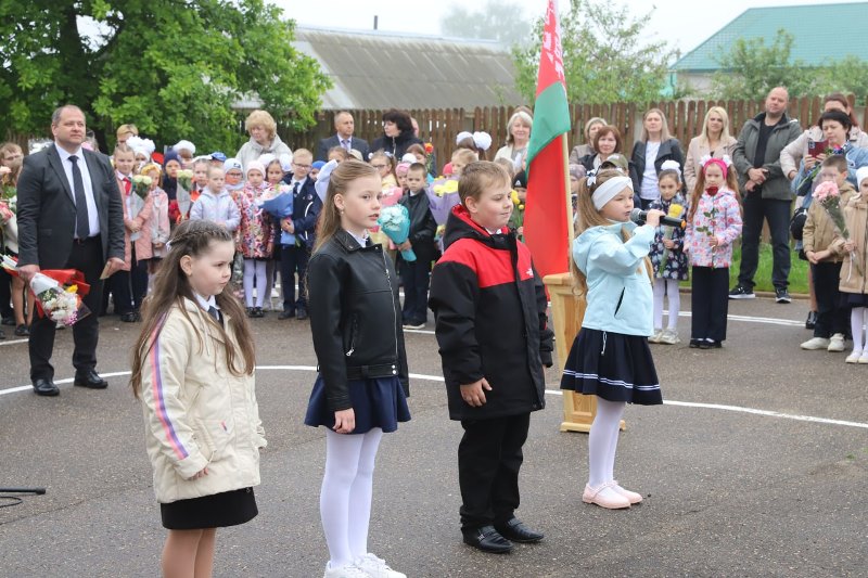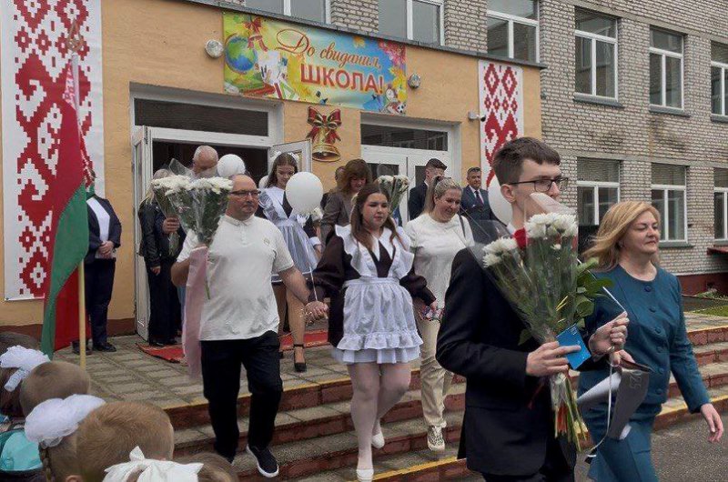 Право дать последний звонок в этом учебном году было предоставлено ученикам 11 класса Владиславу Бадуну и Анастасии Раловец, ученикам 1 класса Арсению Войткевичу и Арине Красильниковой.
