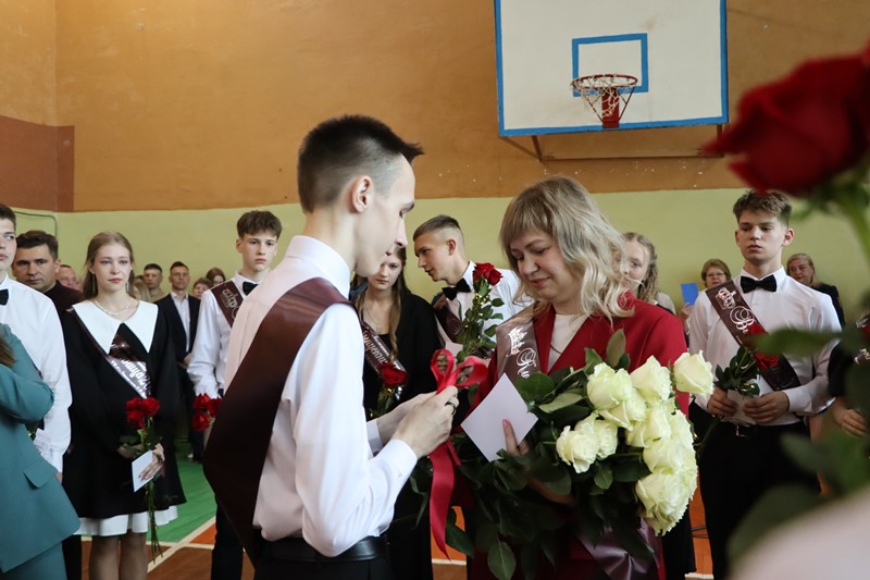 В этом году стены Бегомльской школы покидают 10 одиннадцатиклассников. С окончанием обучения их поздравили Валентина Рандаревич, директор школы Петр Гигель, первая учительница Елена Хиневич, классный руководитель Мария Кирко и другие педагоги, родители и первоклассники.