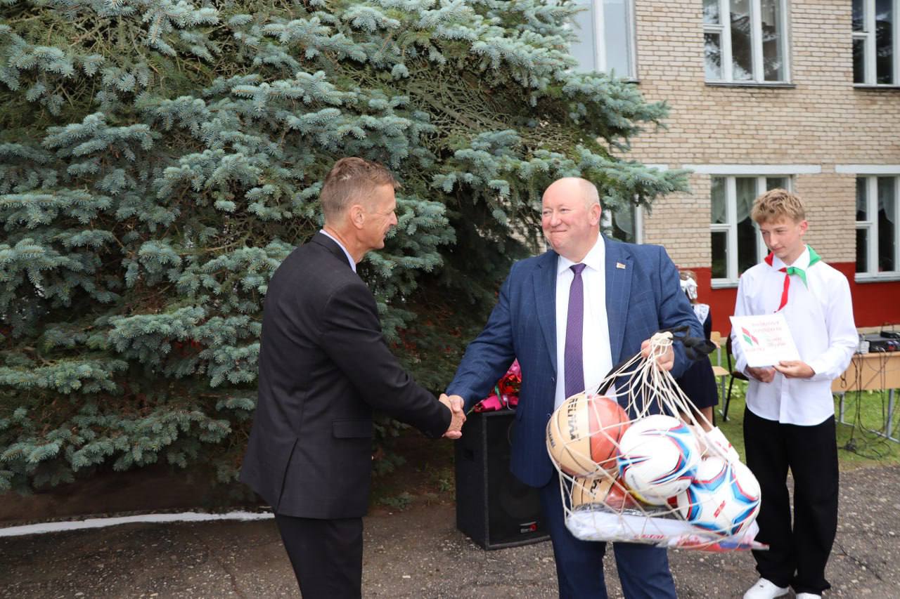 Школе также передан от райисполкома и РО РОО “Белая Русь” спортивный инвентарь. Подарки вручил и директор ОАО “Барсучанка” Сергей Москалёнок. В этом году в Порплищенскую СШ пришли четыре первоклассника. Выпускников – пять. Право дать первый звонок получили ученица 11 класса Валерия Золотухо и ученик 1 класса Алексей Шарох.
