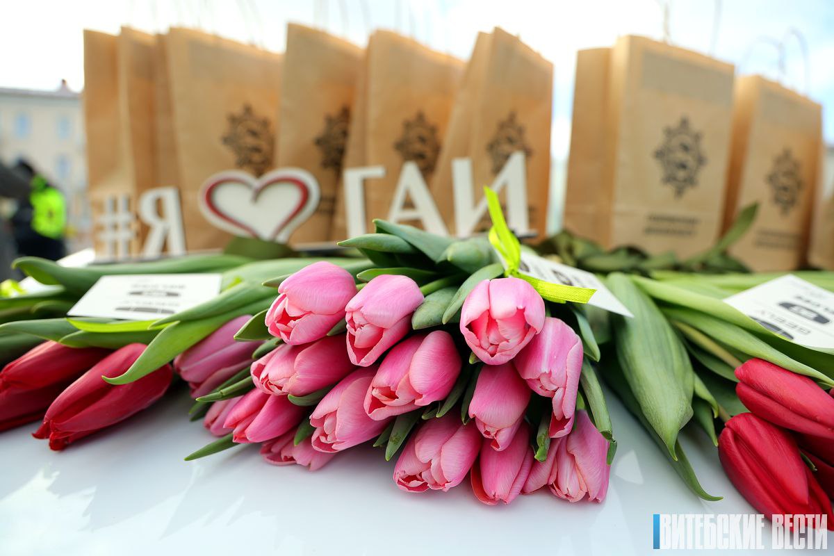 На площади Ленина в Витебске представительниц прекрасного пола поздравлял начальник управления ГАИ УВД облисполкома полковник Михаил Дядичкин. Он желал женщинам счастья, любви, безопасных дорог и вручал цветы и сувениры.