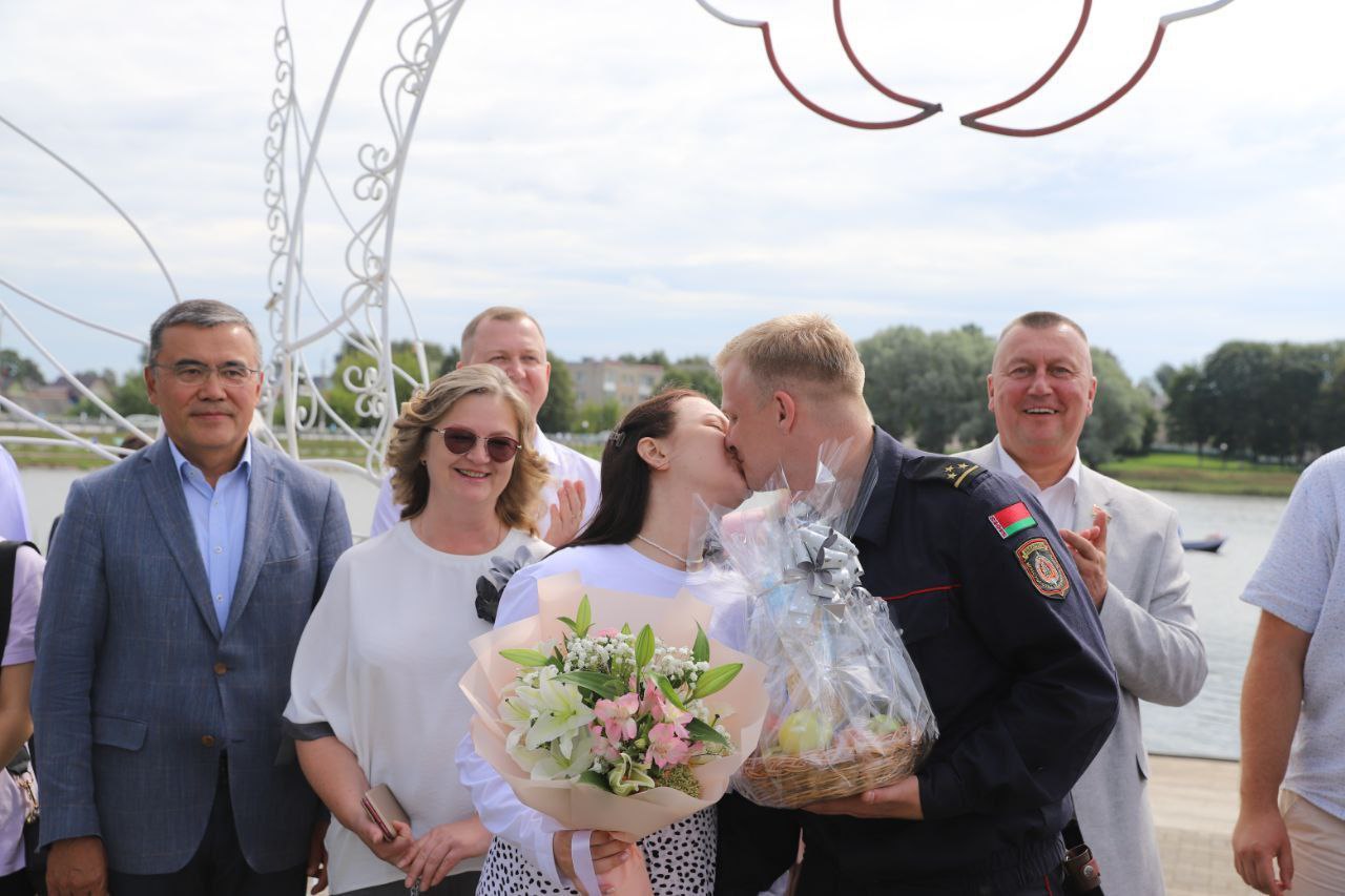 На беразе возера прайшла традыцыйная цырымонія абраду “Лебядзіная вернасць”. Сёлета праз арку Кахання і вернасці прайшла мясцовая маладая сямейная пара Дзмітрыя і Карыны Кальчынскіх.