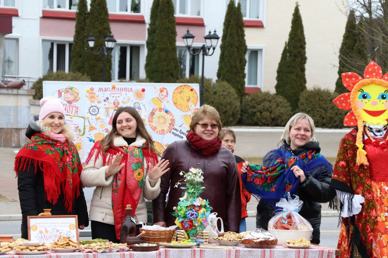 Сапраўдным упрыгожваннем свята сталі тэматычныя пляцоўкі ўстаноў і арганізацый горада ў рамках раённага конкурсу на лепшую тэматычную пляцоўку "Масленічны карагод".