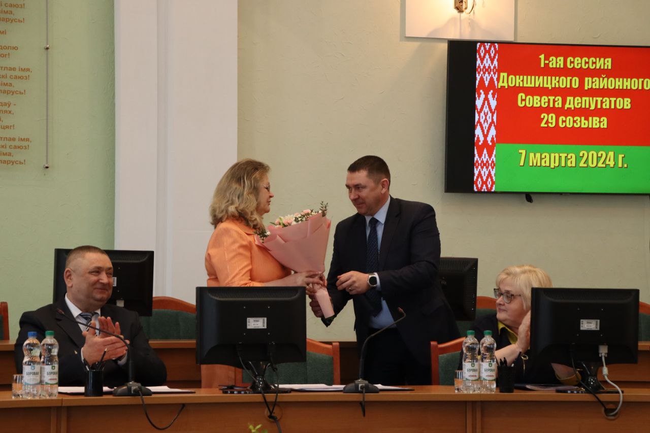 Сёння адбылася першая арганізацыйная сесія Докшыцкага раённага Савета дэпутатаў дваццаць дзевятага склікання.