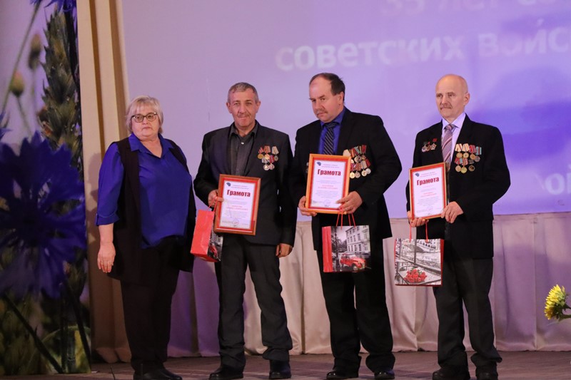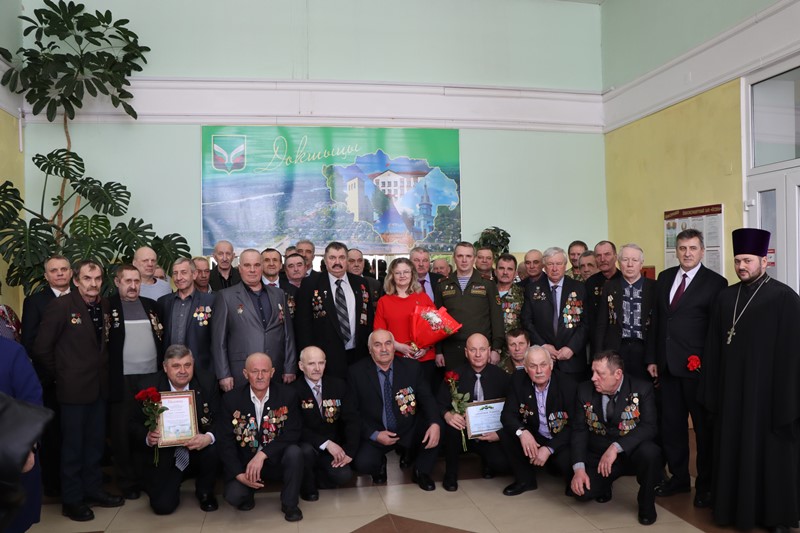 Прысутных у зале вітаў ваенны камісар Віталь Леснічэнка, які ўручыў юбілейны медаль 29-і воінам-інтэрнацыяналістам. Для ўручэння грамат Докшыцкага РА прафсаюзаў на сцэну запрасілі Ядвігу Шульгат. Узнагароды і памятныя падарункі атрымалі ветэраны вайны ў Афганістане: ветурач ААТ “Таргуны” Анатоль Парцянка, вадзіцель вытворча-збытавога ўчастка Глыбоцкага аддзялення філіяла “Энергазбыт” Валерый Казачонак і ляснік Параф’янаўскага лясніцтва Леанід Каросцік.