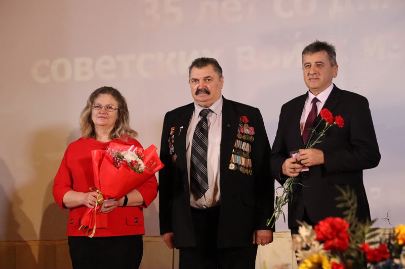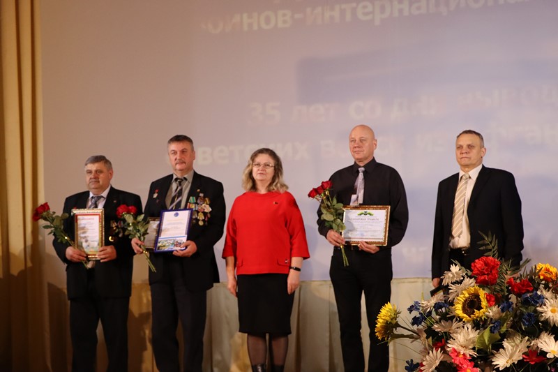 Урачыстасць з віншаваннямі, узнагароджаннямі воінаў-афганцаў і святочным канцэртам ладзілася ў ККЗ “Іскра”. З нагоды 35-й гадавіны з дня вываду савецкіх войск з Афганістана Валянціна Рандарэвіч уручыла прывітальны адрас райвыканкама і райсавета старшыні РА ГА “Беларускі саюз ветэранаў вайны ў Афганістане” Валянціну Андрыеўскаму. Ганаровай граматы райвыканкама, а таксама Падзякі Віцебскай абласной арганізацыі Беларускага прафесійнага саюза работнікаў дзяржаўных і іншых устаноў удастоены агент страхавы прадстаўніцтва Белдзяржстраха па Докшыцкім раёне Венядзікт Грыгаровіч. Кіраўнік па ваенна-патрыятычным выхаванні Бягомльскай СШ імя С.С. Манковіча Вадзім Ціханскі ўзнагароджаны Ганаровай граматай раённага Савета дэпутатаў. Падзяку старшыні райвыканкама атрымаў настаўнік фізічнай культуры і здароўя гэтай жа ўстановы адукацыі Эдуард Батура, Падзяку старшыні райсавета – вадзіцель ТЦСАН Андрэй Ткачэнка.