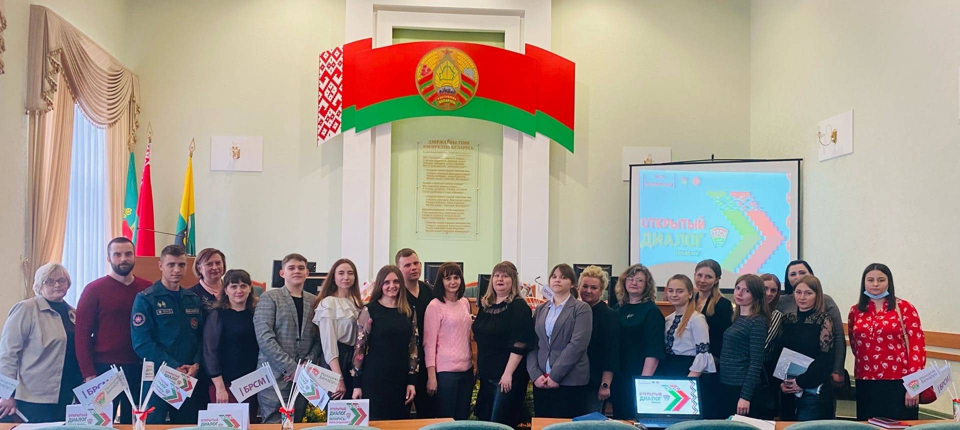 В открытом диалоге принимали участие: председатель Докшицкого районного Совета депутатов, делегат VI Всебелорусского народного собрания – Валентина Юрьевна Рандаревич, начальник отдела идеологической работы, культуры и по делам молодёжи Докшицкого райисполкома -Ольга Васильевна Сушко, главный специалист отдела идеологической работы, культуры и по делам молодёжи -Алена Станиславовна Полянина, председатель Докшицкого районного объединения профсоюзов – Ядвига Иосифовна Шульгат.