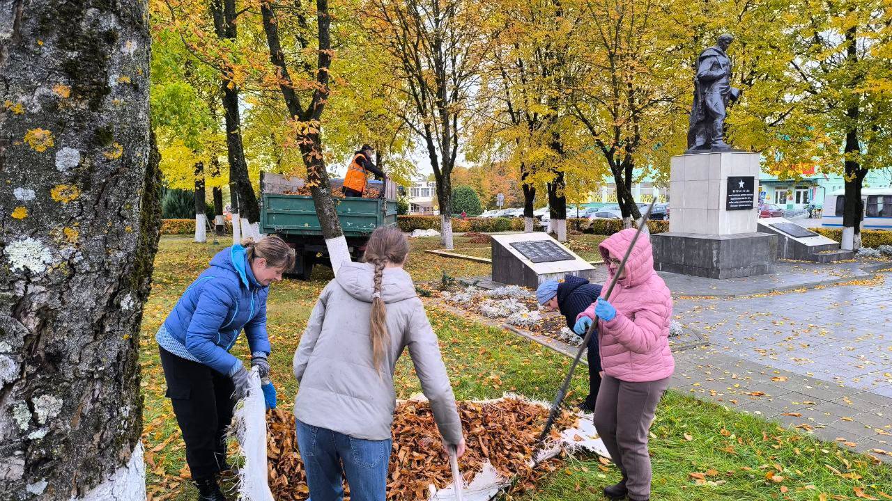 Жители, школьники и трудовые коллективы наводили порядок, убирали листву, благоустраивали памятные места.