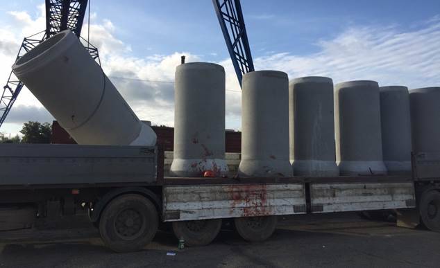 с помощью петлевого стропа железобетонной трубы, находящийся в кузове автомобиля стропальщик был прижат между опускаемой трубой и находящимися в кузове трубами, получив в результате тяжелую травму.