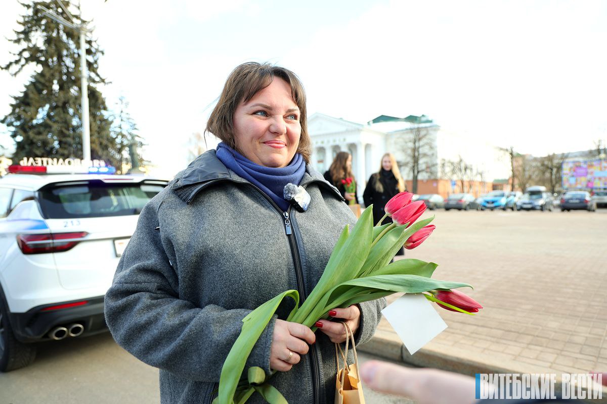 На площади Ленина в Витебске представительниц прекрасного пола поздравлял начальник управления ГАИ УВД облисполкома полковник Михаил Дядичкин. Он желал женщинам счастья, любви, безопасных дорог и вручал цветы и сувениры.